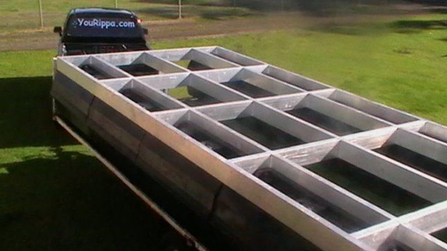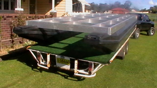 This boat has three rows of floats for extra flotation. This boat can take 2250kg. as is.