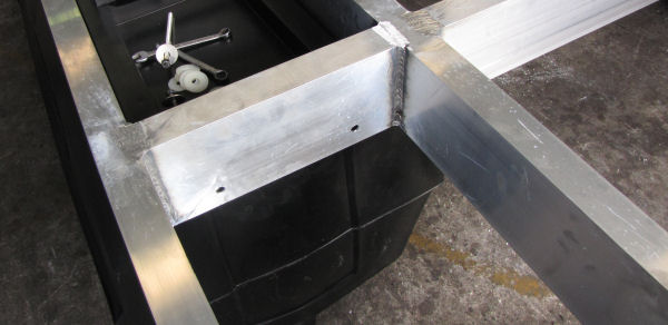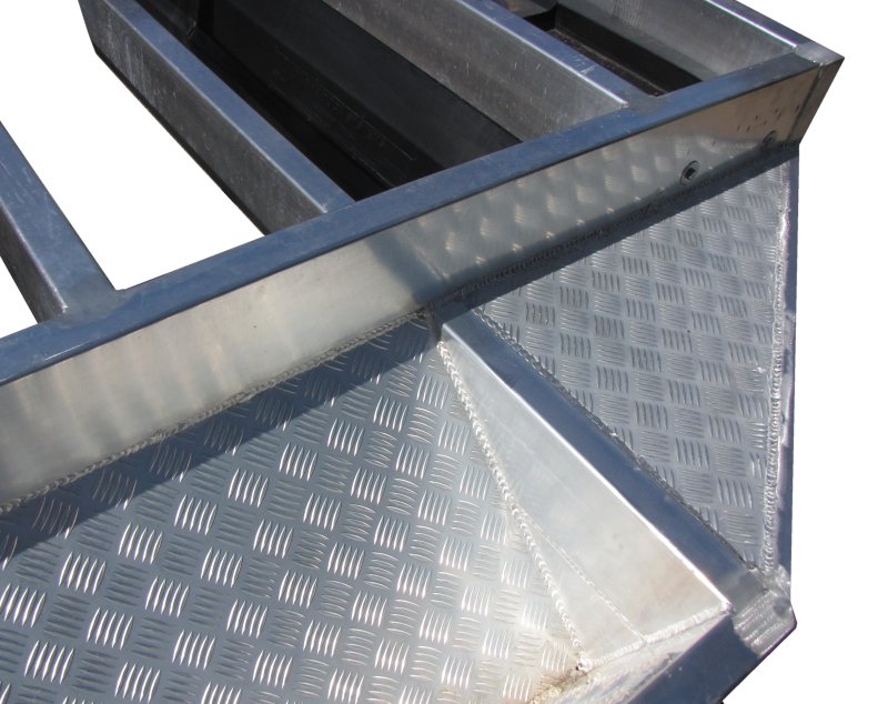 Frame is made from 150 x 50 x 3mm aluminium RHS and is fully welded