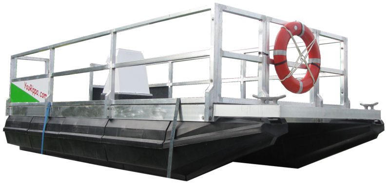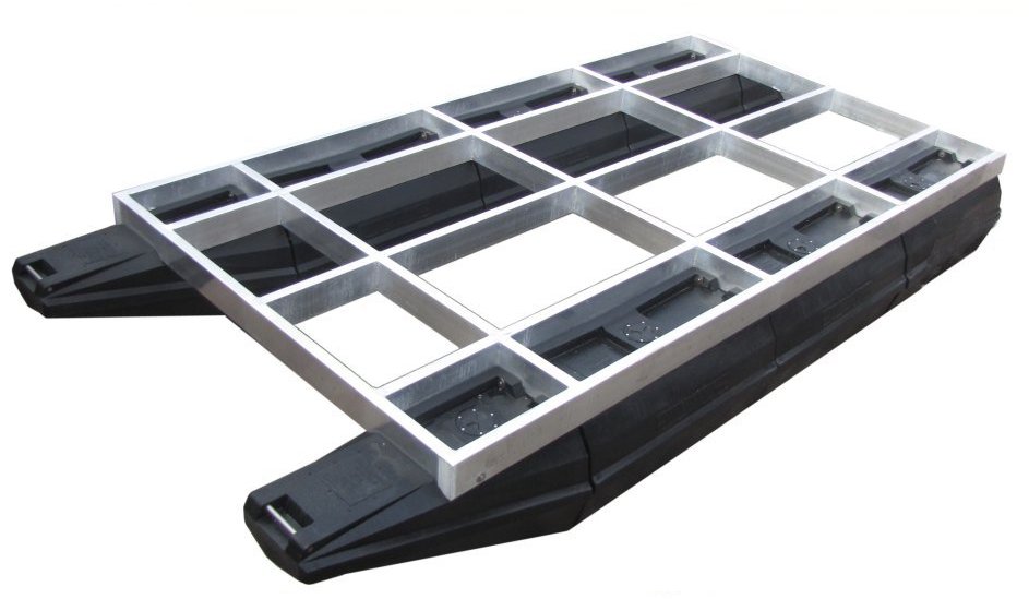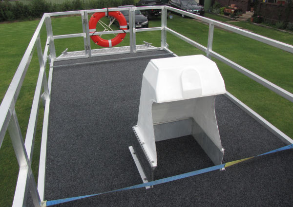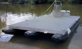 This boat is used as a standard access pontoon when not in use. Supplied with hinge lugs on the side for a six meter ramp to be attached. |