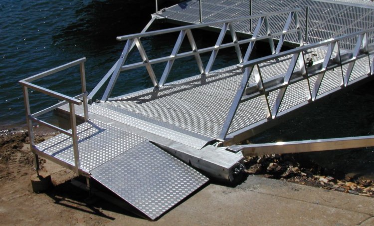 Marine Dock Systems can design and manufacture your ramp or gangway for your floating pontoon or marina. Fully welded aluminium frames, can be decked with aluminium, marine carpet, timber or expanded aluminium mesh.