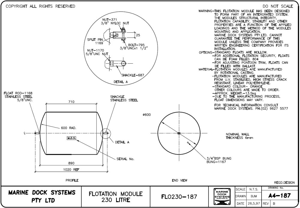 a4-0774 - 333 Litre float and Nose Cone assembly detail