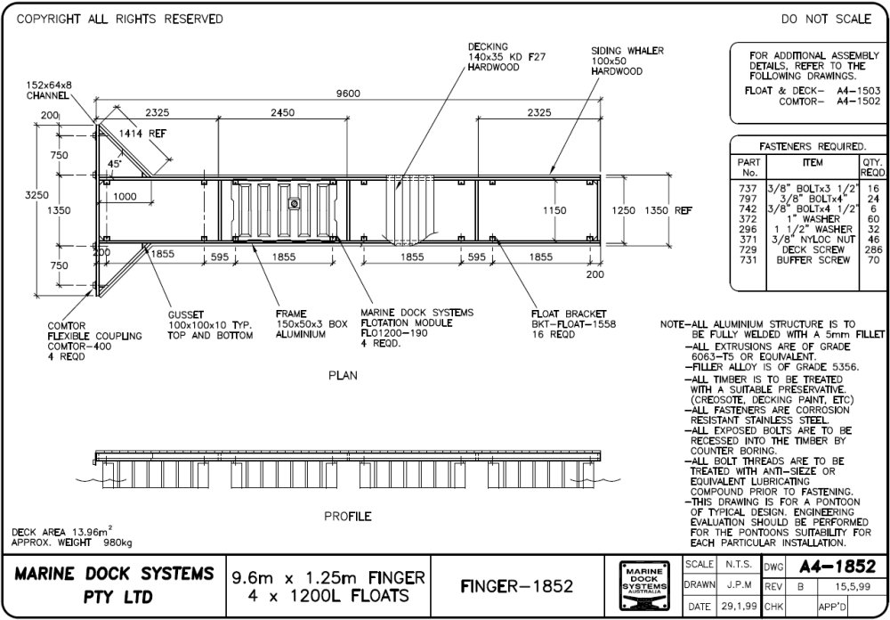 a4-1916 - Pontoon 8.9m x 2.05m alloy frame timber deck - services
