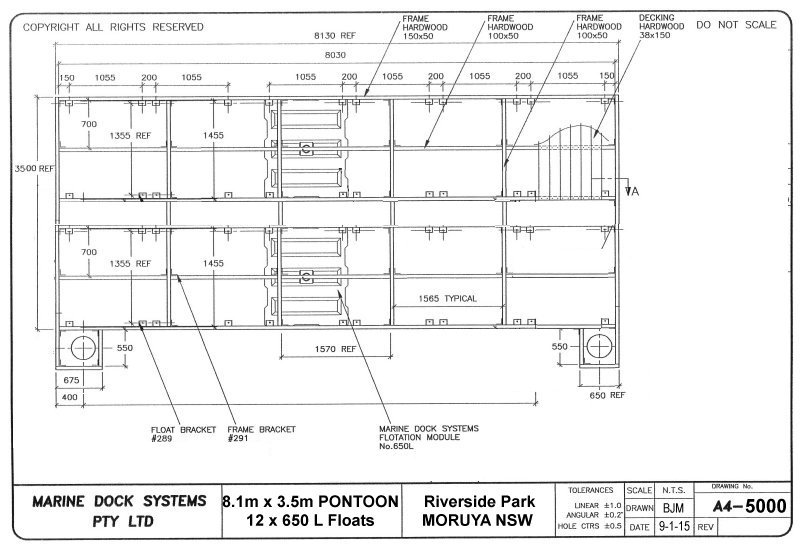 Drawing a4-0643 Pontoon 5.2 mtr x 2.5 (6 x 650 Litre Floats)