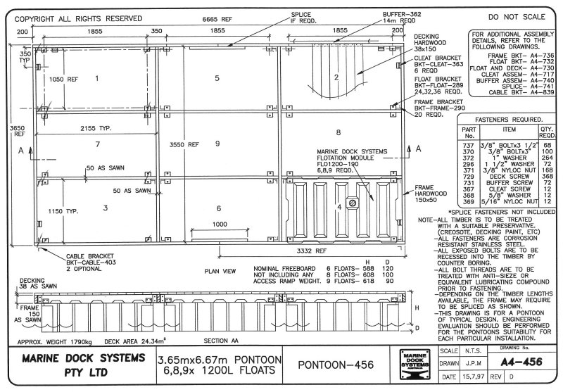 Drawing a4-0456 Pontoon 6.67 mtr x 3.65 (6, 9, 12 x 1200 Litre Floats)